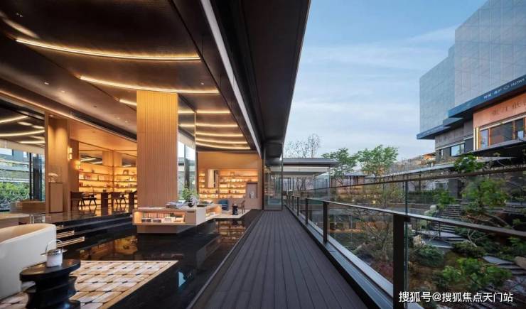 这点在项目的下沉式庭院里,感受尤为真切。借助下沉式庭院与一层地面的高差变化与围合空间的处理,打造一处 垂直的立体花园,每一步都有新的视觉体验。