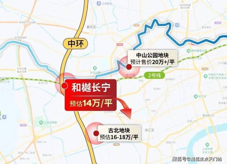 既然天山路住宅收官,我们放大视角来看周边新地:与和樾长宁同环线的吴中路光明乳品厂地块预计售价至少16-18万/㎡(旁边的古北壹号挂牌价超过22万/㎡)。与和樾长宁同2号线的中山公园地块预计售价或超过20万/㎡。
