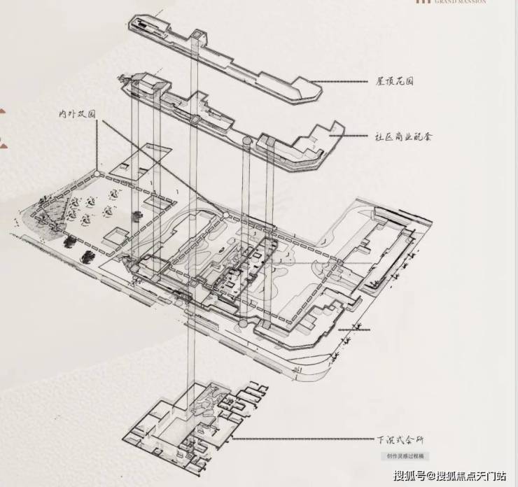 地上是7重归家路线,从口袋公园到商业烟火,穿越门厅后经过三重社区景观,最后高定入户,层层递进的礼序归家,开启一场穿越风景的归家之旅。地下是4重,从车库门头到车库玄关到入户光厅再到入户大堂,让平凡的日常场景成为尊崇身份的暗语。