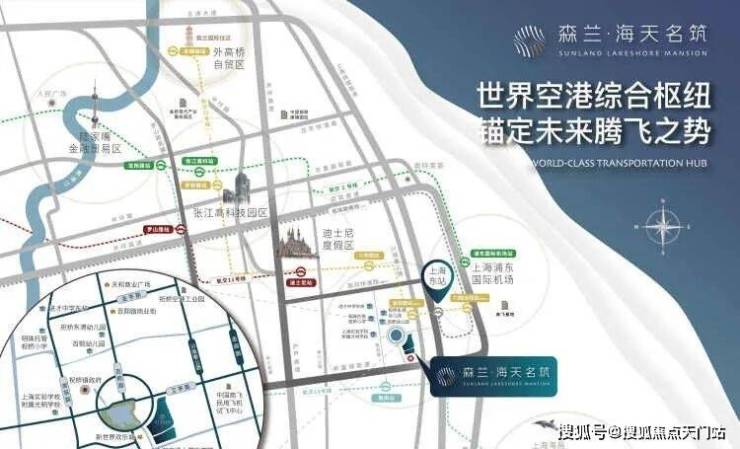 本项目地处祝桥镇 “祝桥核心片区”的居住板块。在 上海2035规划 中,祝桥地区将成为上海国际航运中心创新转型和功能提升的重要载体,真正形成以东方枢纽为核心的 祝桥国际社区 。 在政府强力背书下,祝桥航空城是“十三五”期间与世博、临港、迪士尼同量级的开发区域。它的规划面积超过了100平方公里,未来将成为亚洲较大、世界著名的航空城。 “祝桥核心片区”的居住板块距离浦东机场航站楼约5公里左右,是既能享受浦东枢纽规划带动,又兼具宜居生活环境的板块。森兰海天名筑是目前祝桥核心片区内唯一在售的地标性住宅,稀缺性显而易见,未来前景可期。