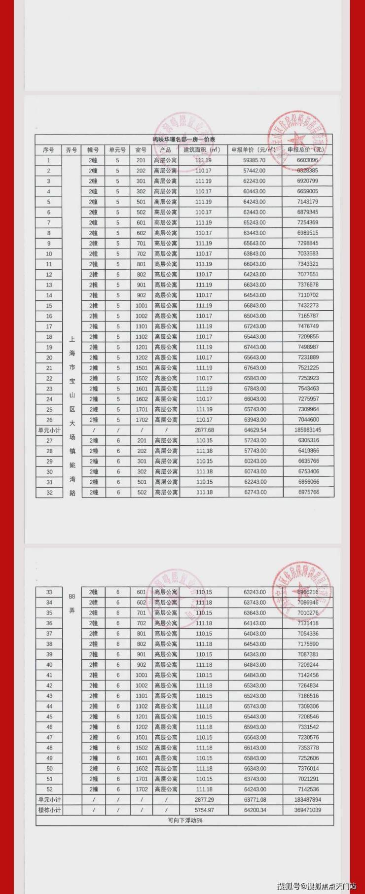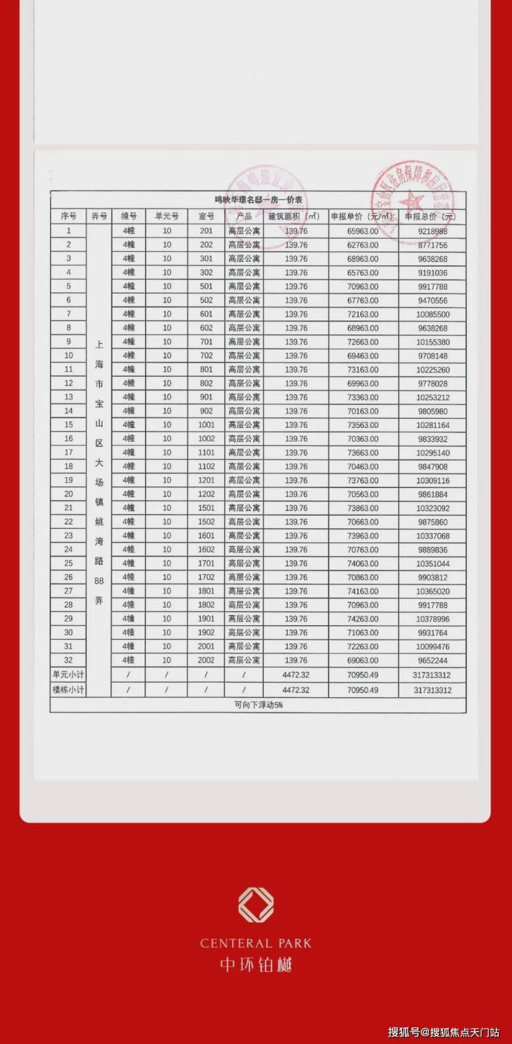 上期一房一价表: