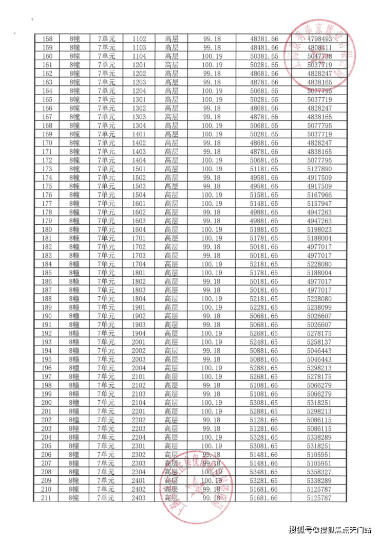 完整一房一价表如下: