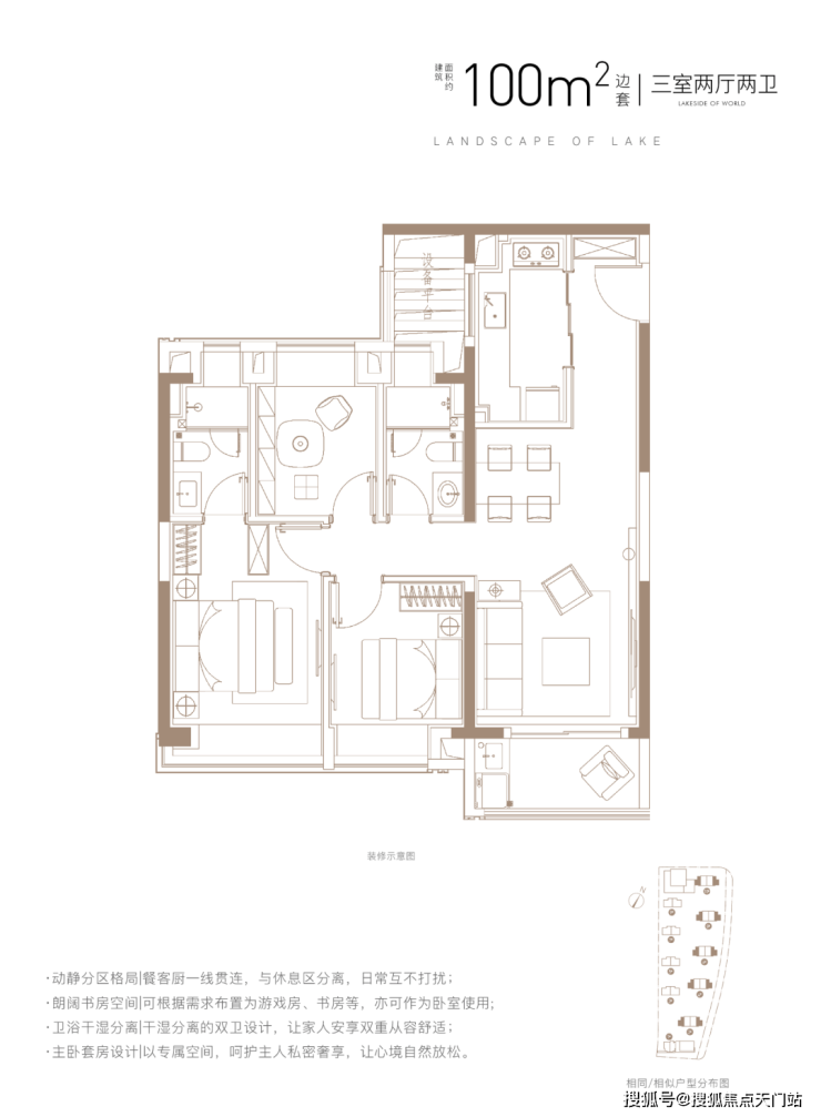 该户型能满足业主从二人世界到三口之家,再到二胎家庭的全生命周期需求。