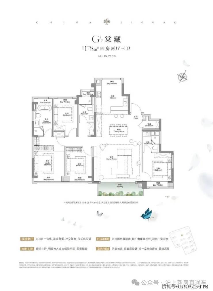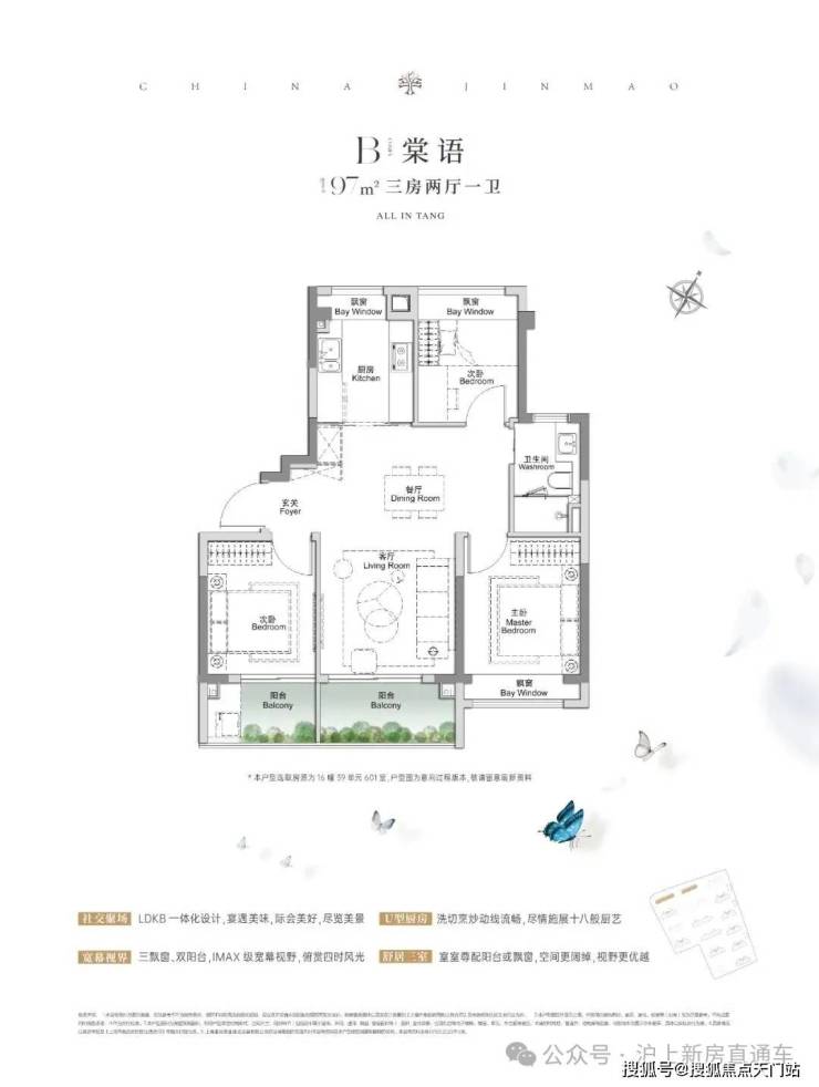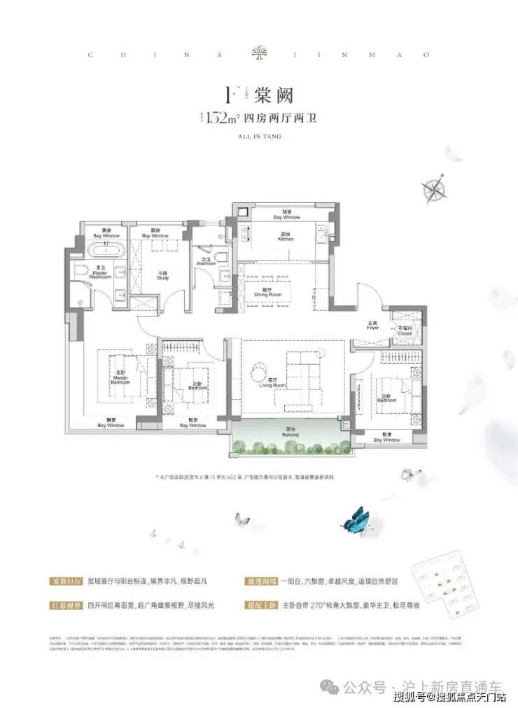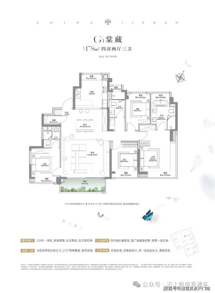 全景舱艺境美宅,标准层约3.1米层高、270度全景飘窗、LDKB一体化、南向跑道阳台、超12米南向全屏开间,无限视野尽收眼底,还有超金喜的满配精装, 全上海只有央企金茂才能做得到。