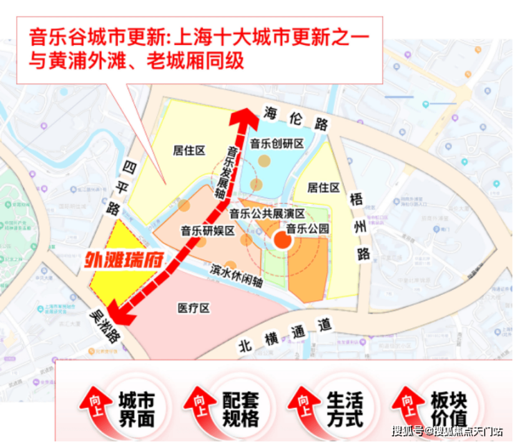 项目紧挨嘉兴01单元,正对 上海音乐谷 ,未来将形成滨水艺术休闲区,规划新增8个小剧场、3个livehouse、1个水上剧场,把“夜上海”的流量重新拉回虹口。从外滩瑞府出发,穿过一座步行桥,就能抵达这个未来的世界级演艺群落。