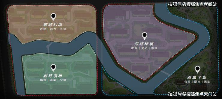 比如,三座岛屿社区都有不同主题,并设置了 非常丰富的景观节点