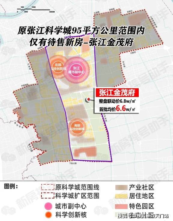 「张江金茂府」则是2017年张江科学城95平方公里规划范围内 (信息来源于张江科学城官网) 仅有的新房项目,整盘联动价6.8w/㎡,首批均价仅约6.6w/㎡,难得的真正张江科学城的置业机会!