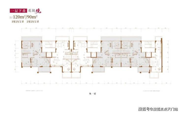 建面约120㎡3房2厅2卫/90㎡2房2厅2卫(一层下叠):