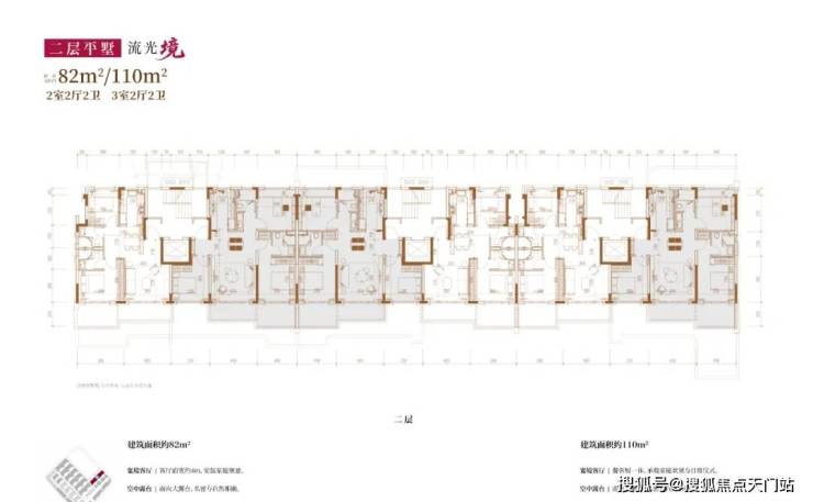 建面约82㎡2房2厅2卫/110㎡3房2厅2卫(四层上叠):