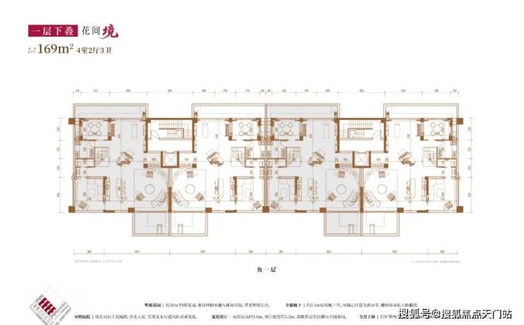 建面约169㎡4房2厅3卫(一层下叠):
