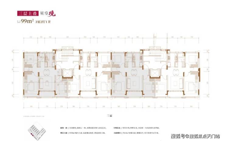 建面约99㎡3房2厅2卫(三层上叠):