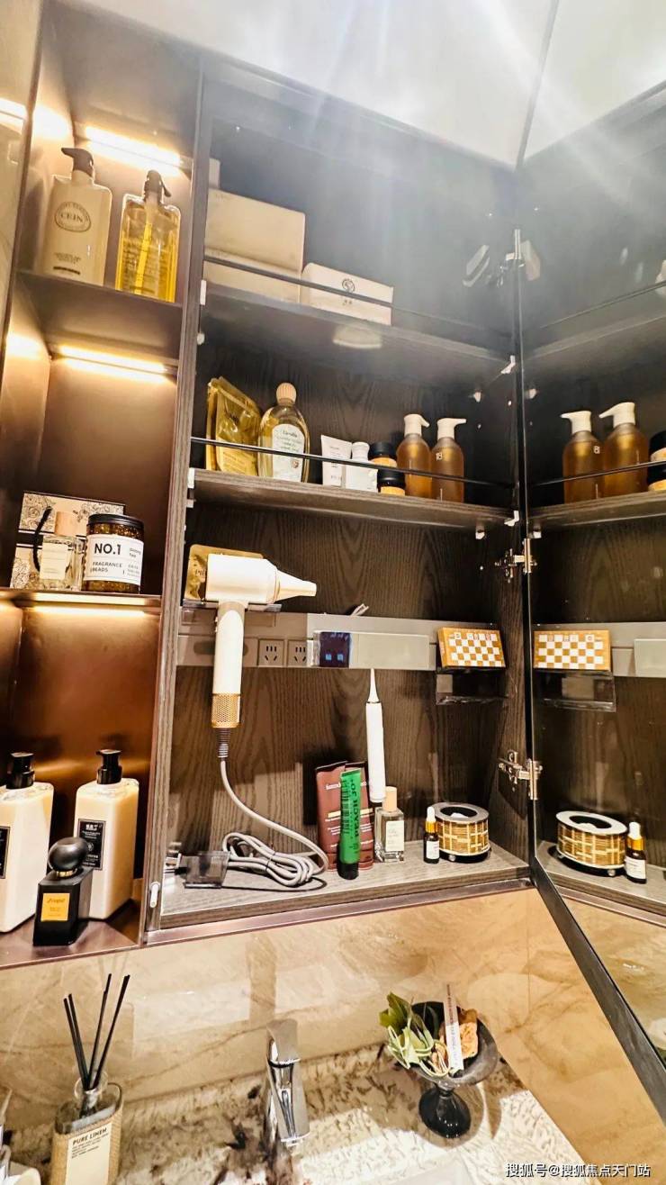 除了户型尺度,招商序的样板房用料也是在700万这个量级难逢敌手,整个样板间,除了卧室的拼花地板,几乎全是岩板与奢石。连卫生间墙面都做到了岩板通铺.....而3.1米的层高也使客厅即使做局部吊顶也好不压抑,充满了艺术感;