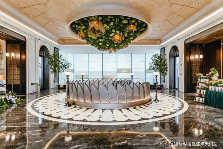 进门之后,恍若走进一幅立体绽放的画卷。地面采用了石材拼花,纹理如行云流水般舒展,在光影交错间勾勒出 低调的奢华。