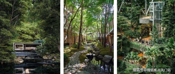有别于传统豪宅独立花园的社区,项目的花园之间,是可流动的,约10米高差的挑空,大尺度中庭景观+立体园林体系,以石阶打造秘境步道和溪谷小径,从入口的观景平台到山谷的峡林溪涧,让每一个花园都互相链接!