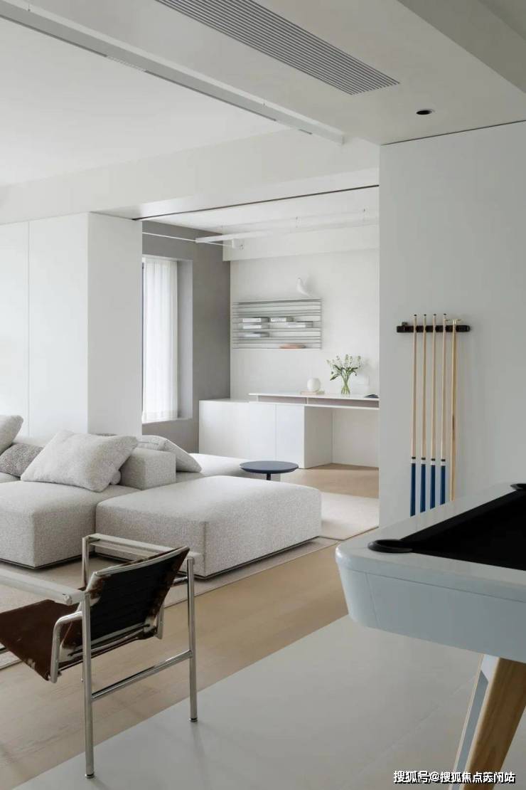 厨房操作平台的横向延展催生出社交属性的介入,使空间在功能置换中获得新的定义。传统餐饮概念在此被解构,通过台球桌的跨界演绎,将休闲与餐厨的日常起居相互渗透,注入个性化的趣味体验。