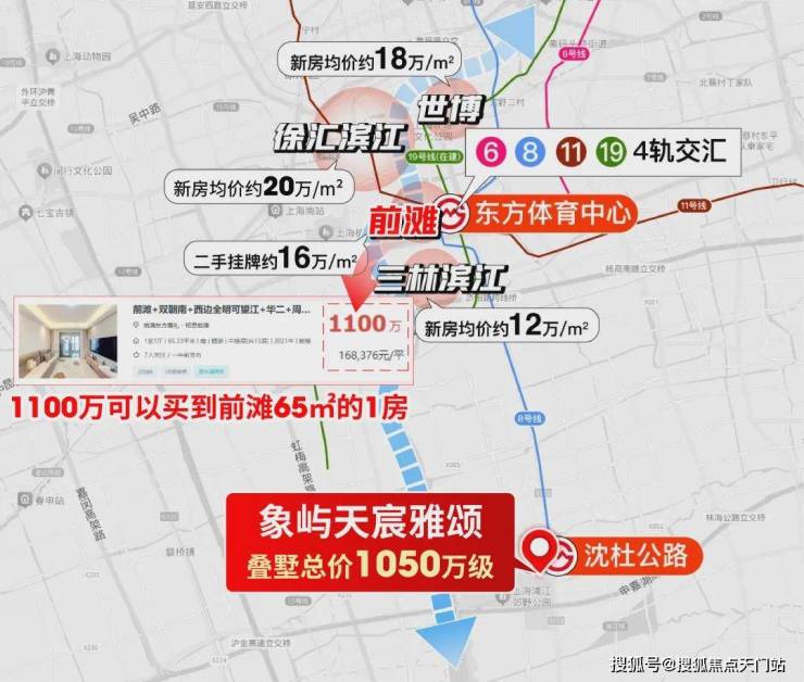 我们来看这条黄金轴的房价,世博新房18万以上,徐滨20万左右,千万预算似乎连门槛都摸不到。