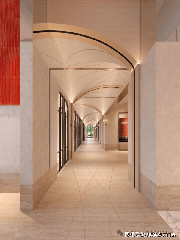全系风雨连廊: 项目打造了上海市场罕见的“流线全覆盖 ”连廊系统。这条连廊不仅是遮风避雨的通道,其下方空间更被打造为一座与花园景观交融的“线性美术馆”。让业主归家成为穿梭时空的艺术之旅。