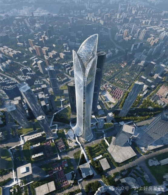 垂直历史”理念重构海派风貌美学: 外立面上,高层基座溯源石库门建筑精髓,复刻经典拱券符号;中段以通透玻璃幕墙搭配流线型金属线条,营造国际前沿的现代质感;顶部“冠冕”造型,进一步升华昭示性。