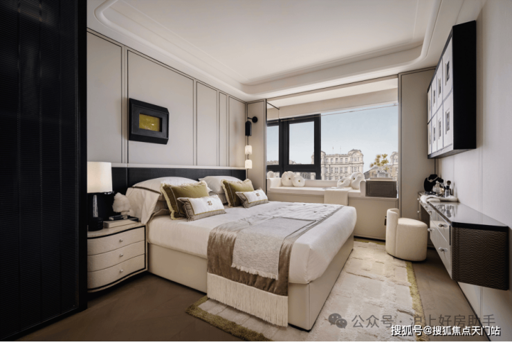 尺度MVP:约9米的宽幕贯通厅连接着超大的阳台,外滩天幕的繁华景色在这里成为日常;南向次卧为孩子的成长预留了足够的想象空间;北向房间面宽约 3.1米、进深约 4.15米(含 约60cm 宽景转角飘窗)的空间,彻底跳脱 “次卧即局促” 的刻板印象。无论是作为长辈房,还是书房,都能享受到与主卧同质的舒适 。