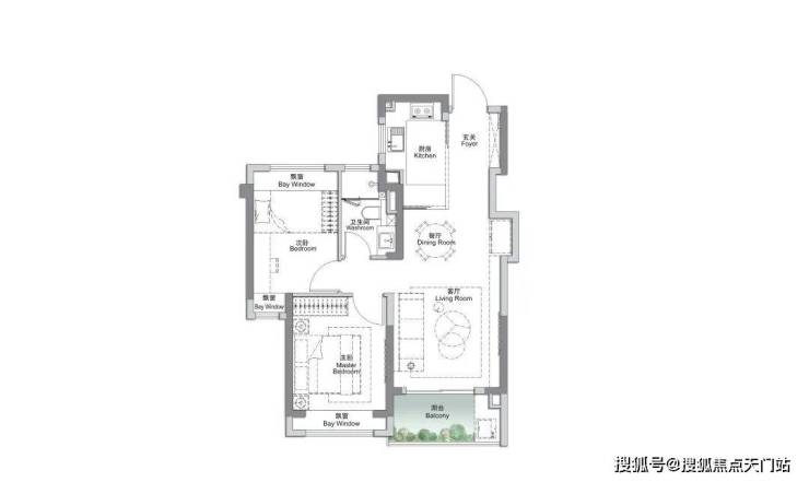 这个户型除了三开间朝南,再加上“3个飘窗+双面阳台系统”,采光通透性非常高优势之外,业主还可根据家庭结构与生活需求,灵活将空间定制为3房或者2+1房。