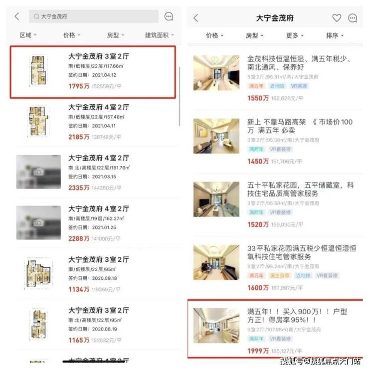 左侧为历史成交价👈;右侧为挂牌价👉,图源链家