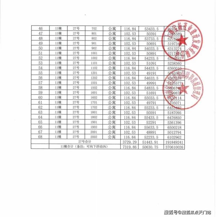 一房一价表发布!