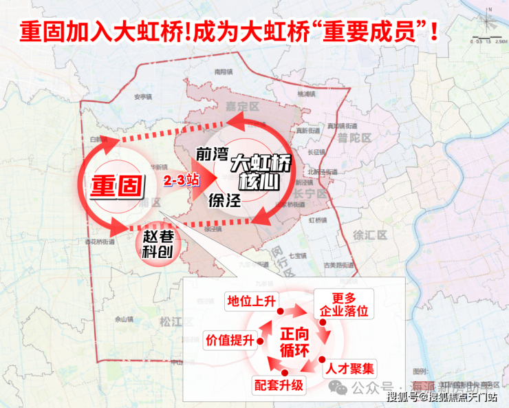 随着被划入大虹桥,重固不再是孤立于核心区域之外的存在,而是真正融入到大虹桥发展中,其定位也从居住板块跃升为大虹桥发展辐射带上的重要成员,获得战略级资源倾斜,这一定位的质变成为撬动区域发展的关键支点