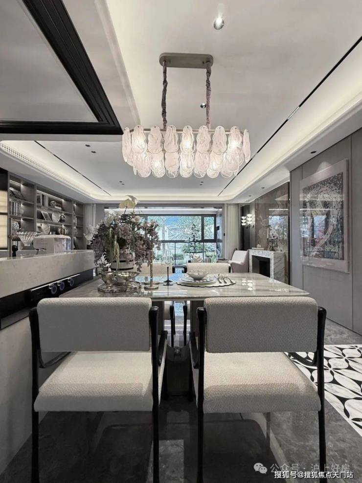 进门之后,恍若走进一幅立体绽放的画卷。地面采用了石材拼花,纹理如行云流水般舒展,在光影交错间勾勒出 低调的奢华。