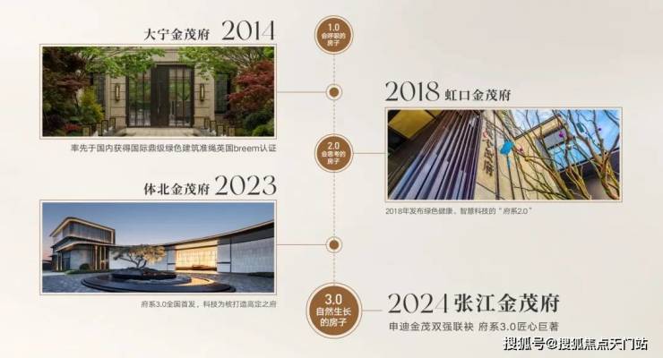 2024年3月中国金茂官方发布金玉满堂四大产品线,其中金代表金茂府3.0系列。截止目前,府系3.0项目在全国有:天津体北金茂府、上海中环金茂府、上海张江金茂府、西安科技路金茂府、苏州狮山金茂府、南京桃园金茂府、杭州上城金茂府、宁波明湖翡丽金茂府。