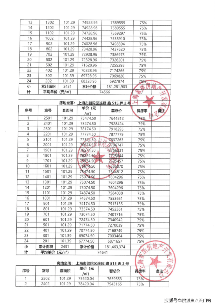 户型图和一房一价表