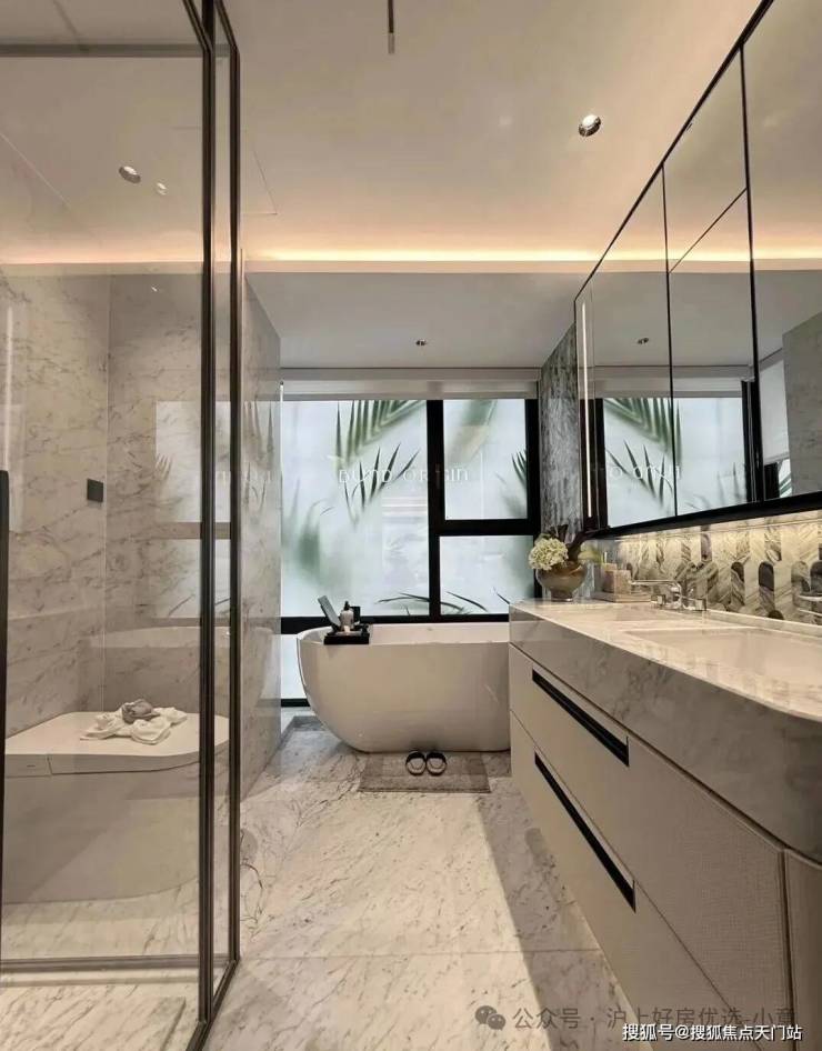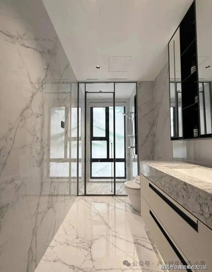 3.八种不同材质的奢石运用,卫生间地面全铺石材