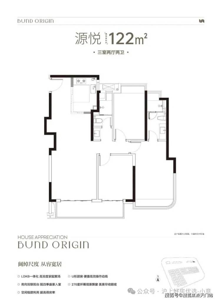 建面约122㎡3房2厅2卫,非常标准的动静分离、三开间朝南户型。