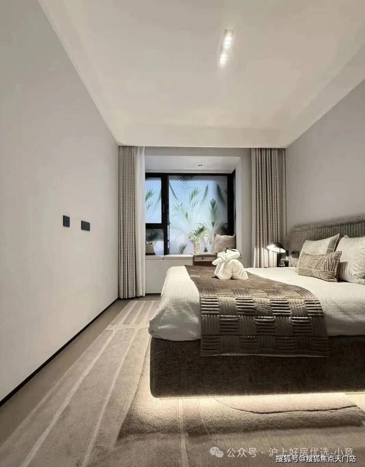 在今年上半年大家都在卷人字拼地板的基础上,外滩源著主卧地板升级为柳叶拼接,进一步做了升级: