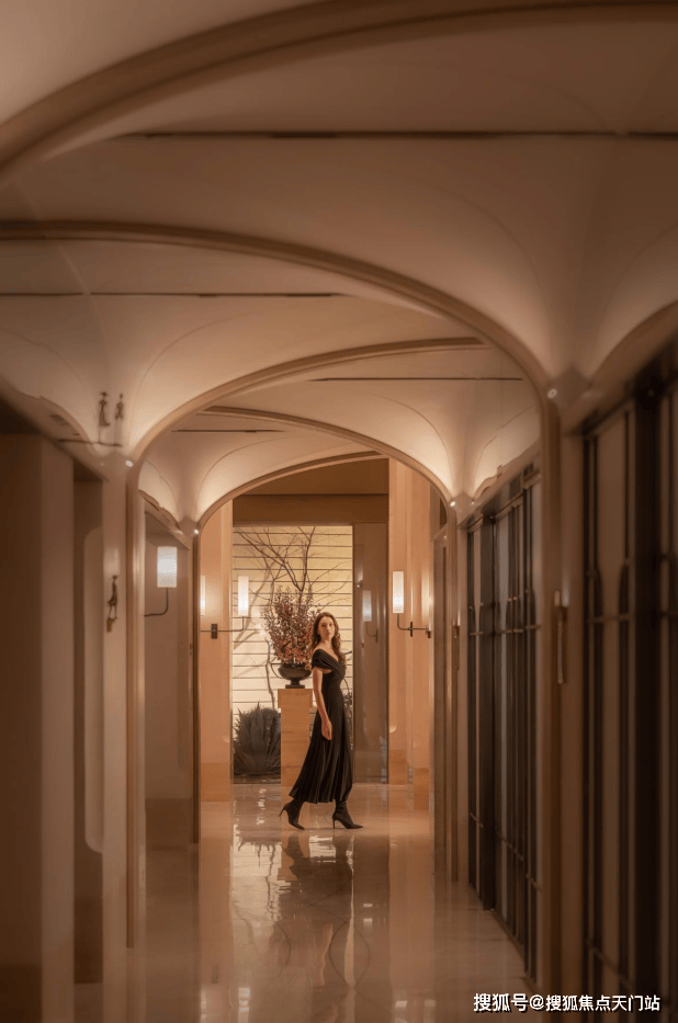 外滩瑞府的2号楼泛会所,正是华润置地深入洞察这份需求后,给出的精准回应。空间由汤臣一品、翠湖六期同款设计师渡边智昭先生操刀,实际呈现的质感不仅还原了设计师的蓝图,更带来超出预期的惊喜。整体空间中,艺术廊道深度融合外滩历史文脉,顶部石材切割出流畅的圆弧转角,与地面弧形线条相互呼应, 行走其间宛如置身艺术展馆,每一步都藏着底蕴,这种经典设计语言让空间越住越耐看,经得起时间考验。