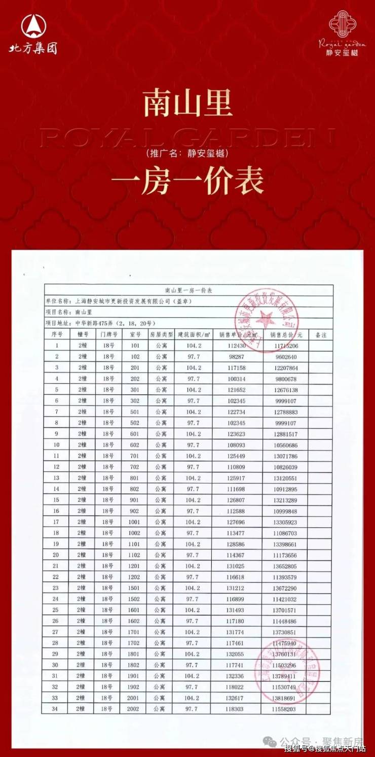 项目一房一价表