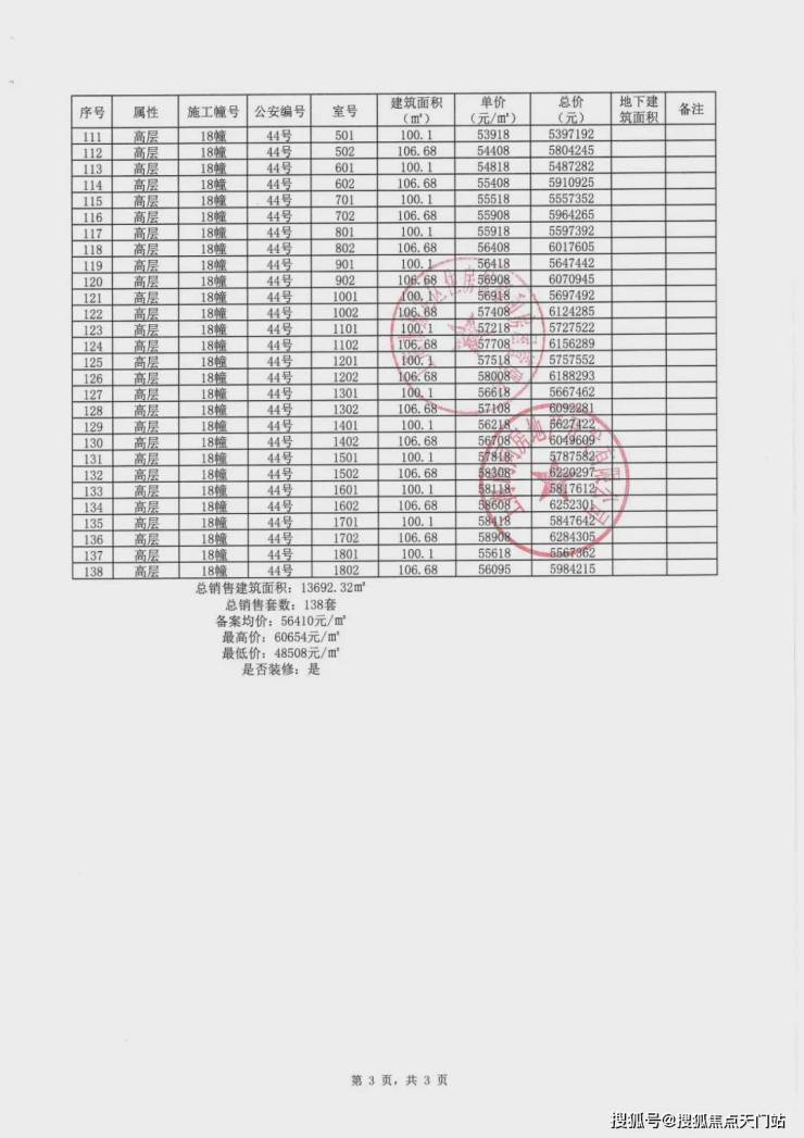 一房一价表: