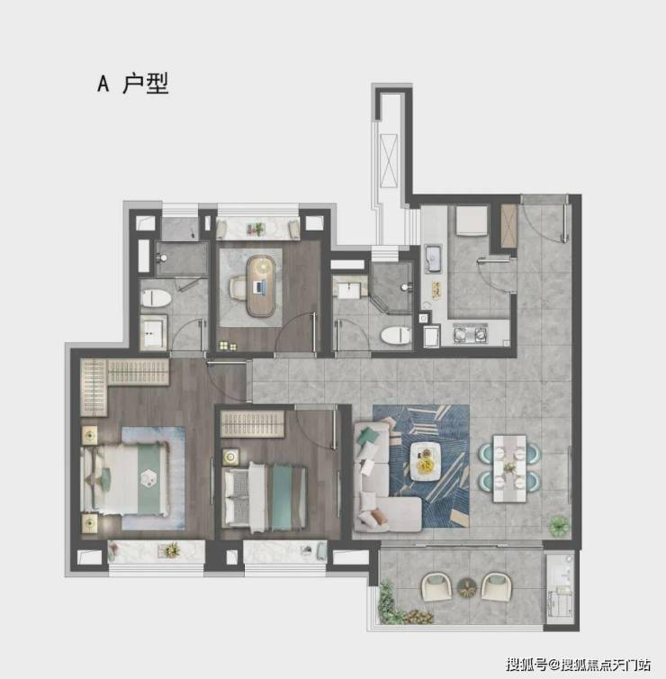 建筑方面,虹桥嘉悦府汲取高级灰经典美学灵感,以珍珠蓝石材、多彩仿石漆、深灰色铝板搭配宽幕玻璃,整体呈现玻璃流幕现代立面,经典永不过时。