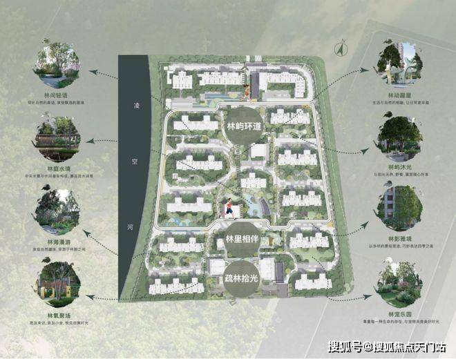 疏林时光,自然都市风尚花园丨林里相伴,社区邻里互动中心丨林庭水境,社交生活休闲会客丨林屿环道,社区健康生活跑道