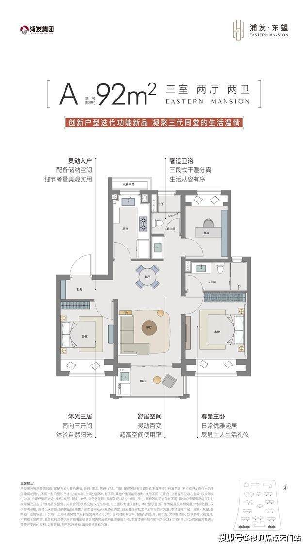 1、建面约92㎡3房2卫