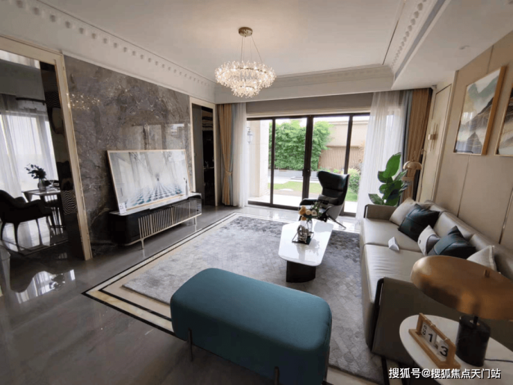 小区建筑设计以简欧风格为主, 外墙干挂大理石,整体是浅米黄色调。四周采用铝合金断桥双层中空玻璃采光窗装饰和庄重石柱,为别墅的豪气程度增添色彩。样板房室内装修为轻奢和简欧混搭风格,自带高级感的设计元素彰显了住户的气质。(结构形式采用砖混结构,优点是保温隔热效果好,缺点是整体性较差,不能擅自拆改墙体。)