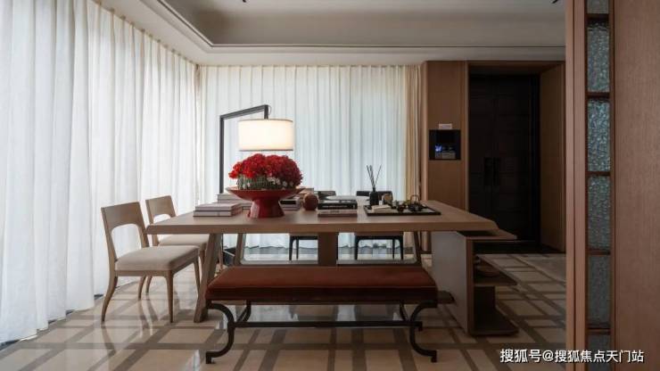 一进|隐园之境:整个翡雲悦府拥有相当宽奢的入户门庭,昂贵的用料、精致的线条与柔和灯光,奢华而有腔调。