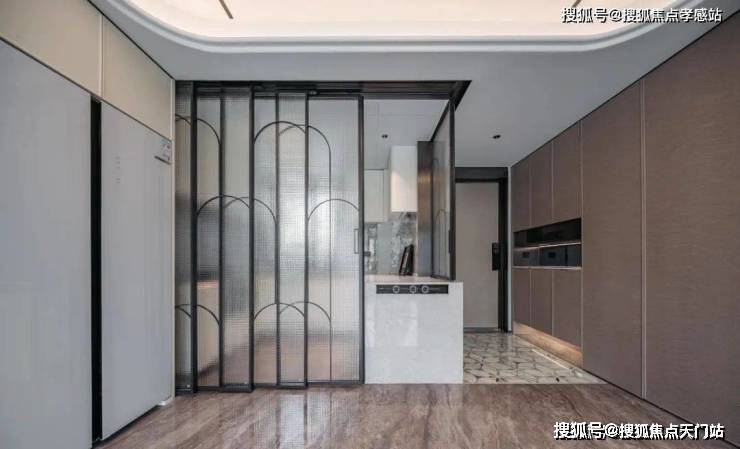 项目的厨房采用 金属框+艺术玻璃移门,推拉丝滑颜值颇高!