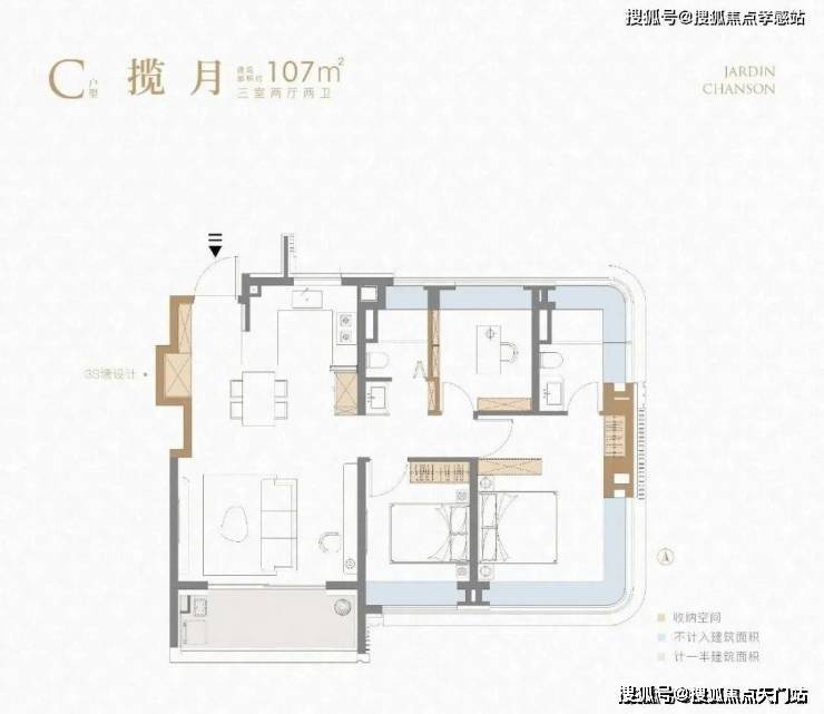 这个 建面约107㎡刷新了我对百平三房的新认知,据悉该户型或将申请专利,实至名归!