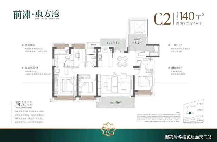 ④产品升级:全铝板立面+带恒温泳池会所+全部(类)1梯1户+标准层高3.1-3.15米,适配高端改善人群居住。