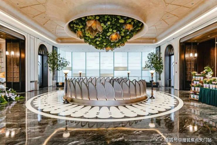 进门之后,恍若走进一幅立体绽放的画卷。地面采用了石材拼花, 纹理如行云流水般舒展,在光影交错间勾勒出 低调的奢华。