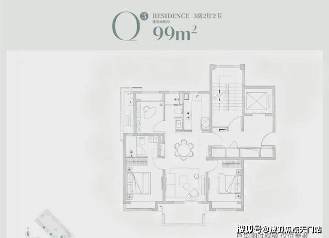 建面约86m²3房2厅2卫: