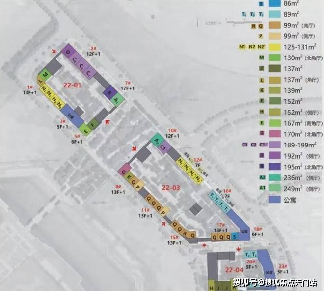 其中:22-01地块占地面积1.1万平方米,总建筑面积5万平方米,包括4栋住宅楼、2栋商业;22-03地块占地面积1.6万平方米,总建筑面积6.7万平方米,包括7栋住宅楼、2栋商业;22-04地块占地面积0.9万平方米,总建筑面积3.8万平方米,包括3栋住宅楼、2栋商业。