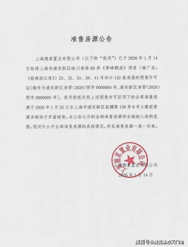 预售许可证号:浦东新区房管 (2026) 预字 0000004 号(本批次)