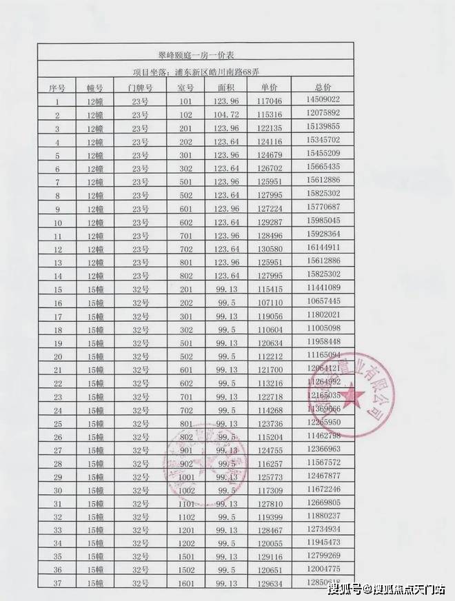 一房一价表如下: