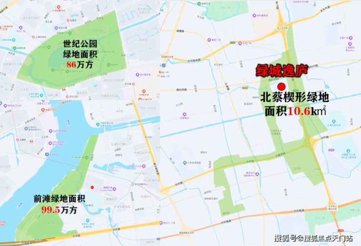 同时,绿城·逸庐所处的北蔡楔形绿地,规划约10.6k㎡珍稀城市绿地资源,这个体量约是世纪公园的7.5倍,前滩的3.7 倍!预计2027年年底完工!